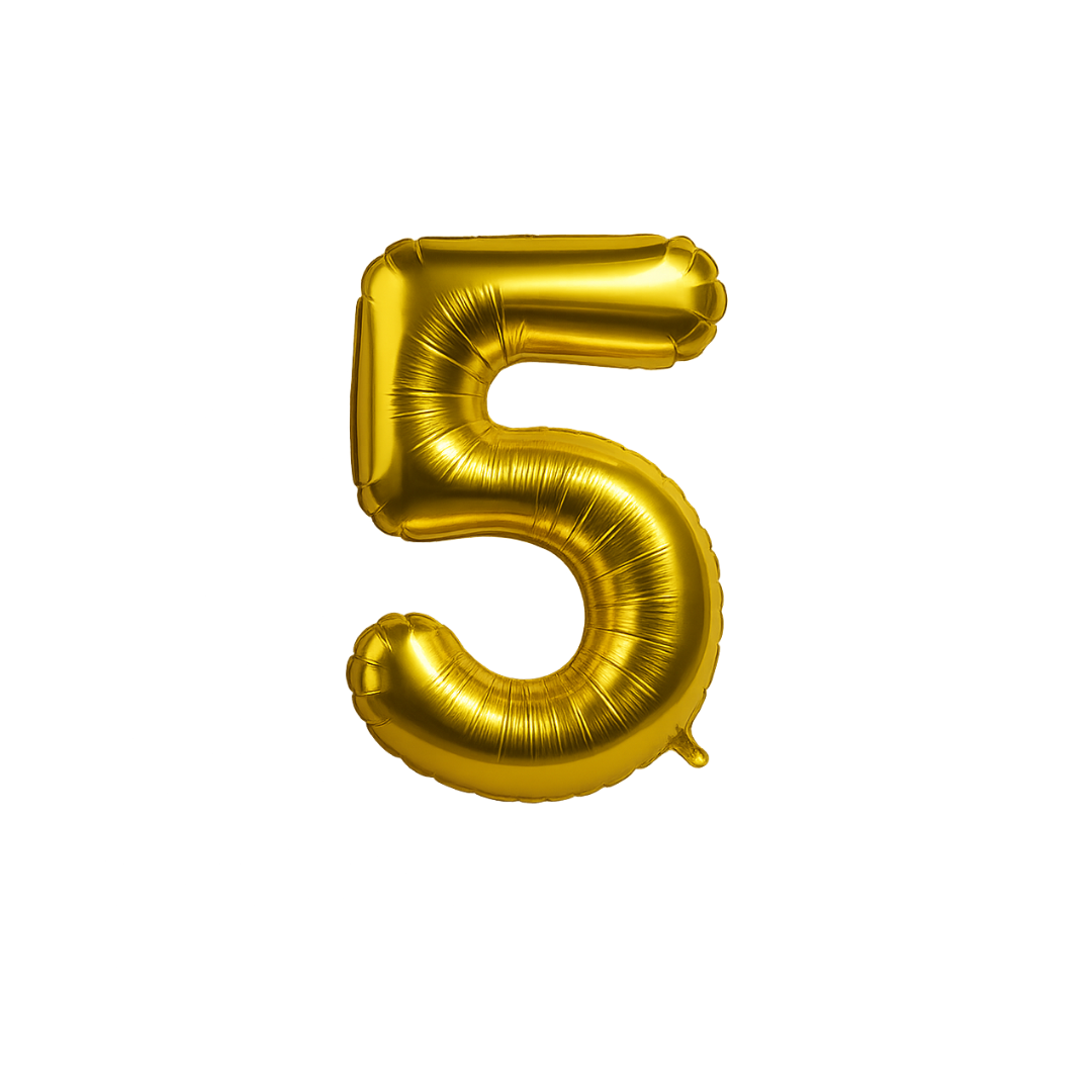 This gold number 5 balloon is ideal for 5th birthday parties or pairing with other numbers to create special dates like 15, 25, or 50.