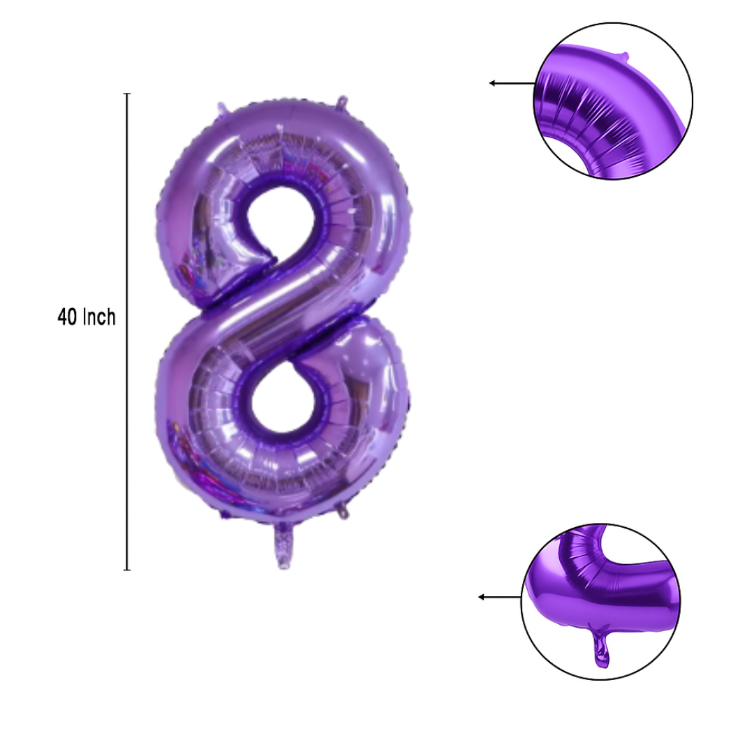 40" Purple Metallic Number 8 Balloon β Giant Foil Birthday Balloon for Girls & Boys