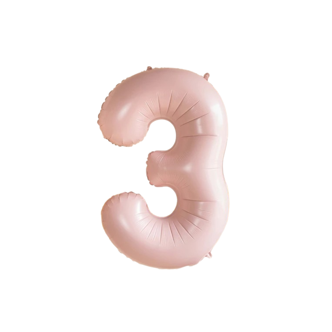 Pastel Baby Pink Matte Number 3 Balloon – 40" Foil Birthday Party Decoration