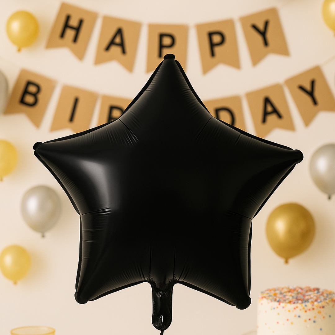 Make your celebration stand out with our Black Star Foil Balloon! This 18-inch balloon brings a bold and modern touch to any party, perfect for birthdays, themed events, Halloween, graduations, or elegant black-and-white occasions.
