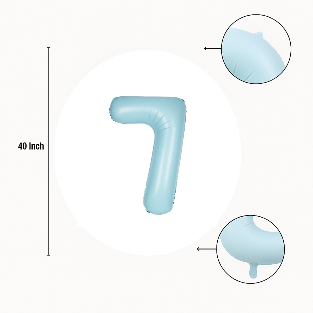 Highlight a fun seventh birthday with this 40-inch Number 7 balloon in pastel matte blue. Its soft, stylish colour and impressive size make it perfect for party setups, themed decorations and birthday photo shoots.