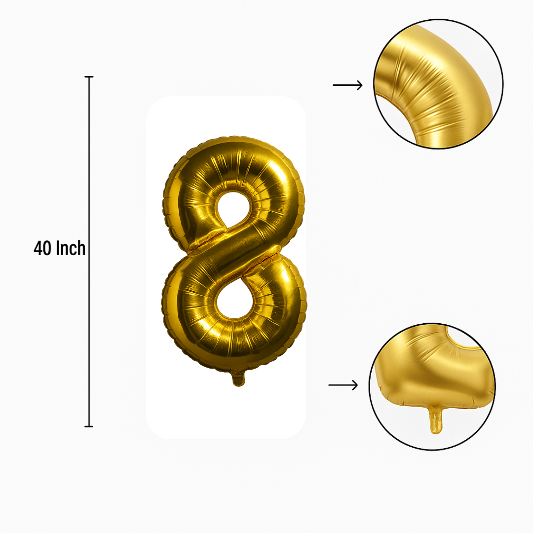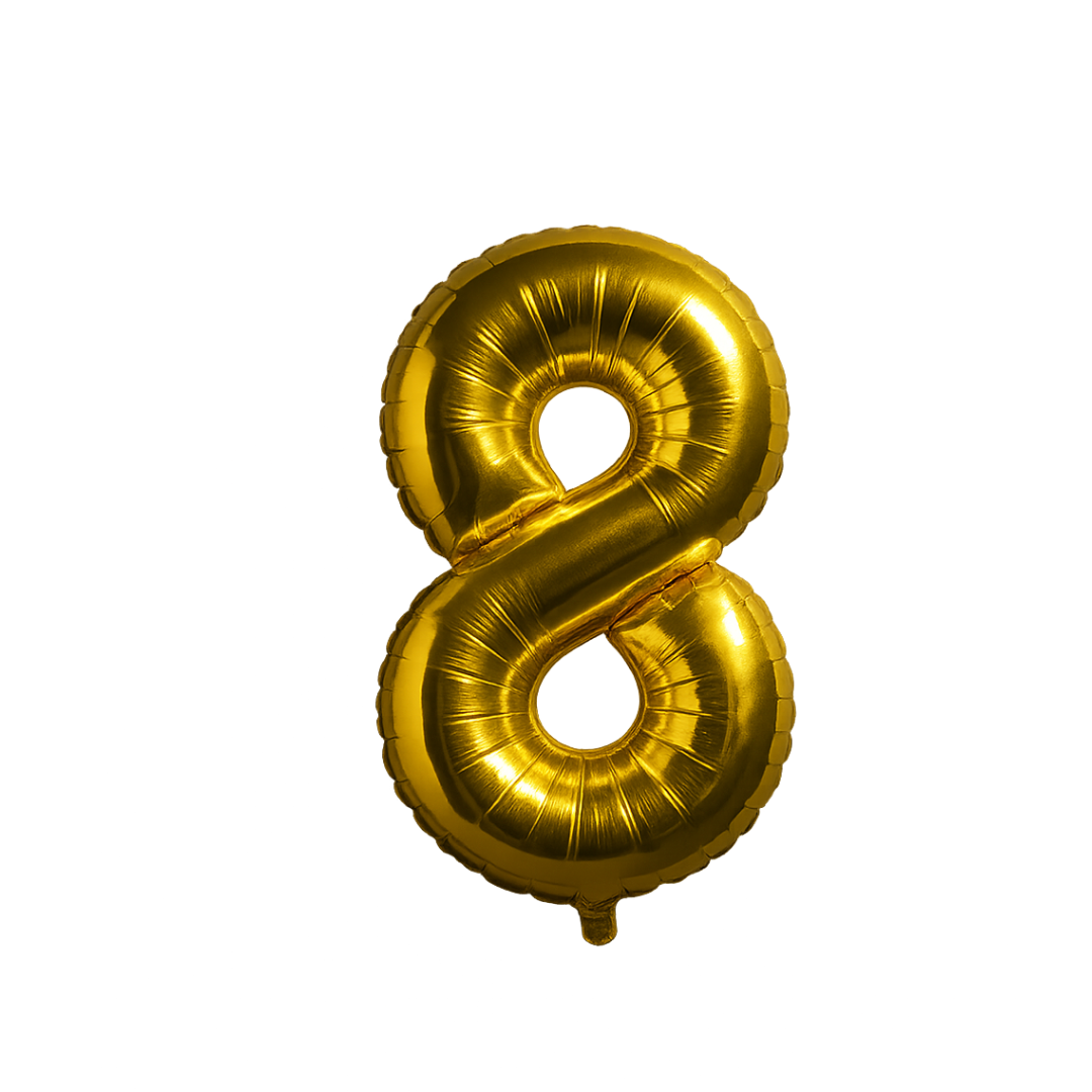 Make every celebration shine with our 40-inch gold number 8 foil balloon. Whether you're planning a birthday, anniversary, or milestone event, this balloon adds a bold and festive touch to your decor.