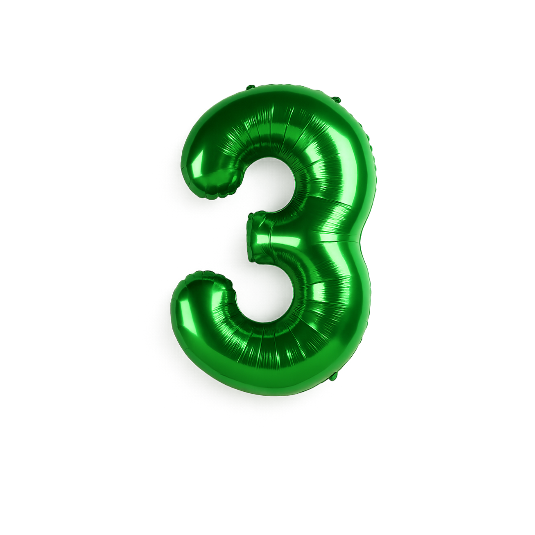Bring your celebration to life with this bold 40-inch Number 3 Green Foil Balloon. Its eye-catching green metallic finish makes it perfect for third birthdays, countdowns, anniversaries, or age-related party themes.