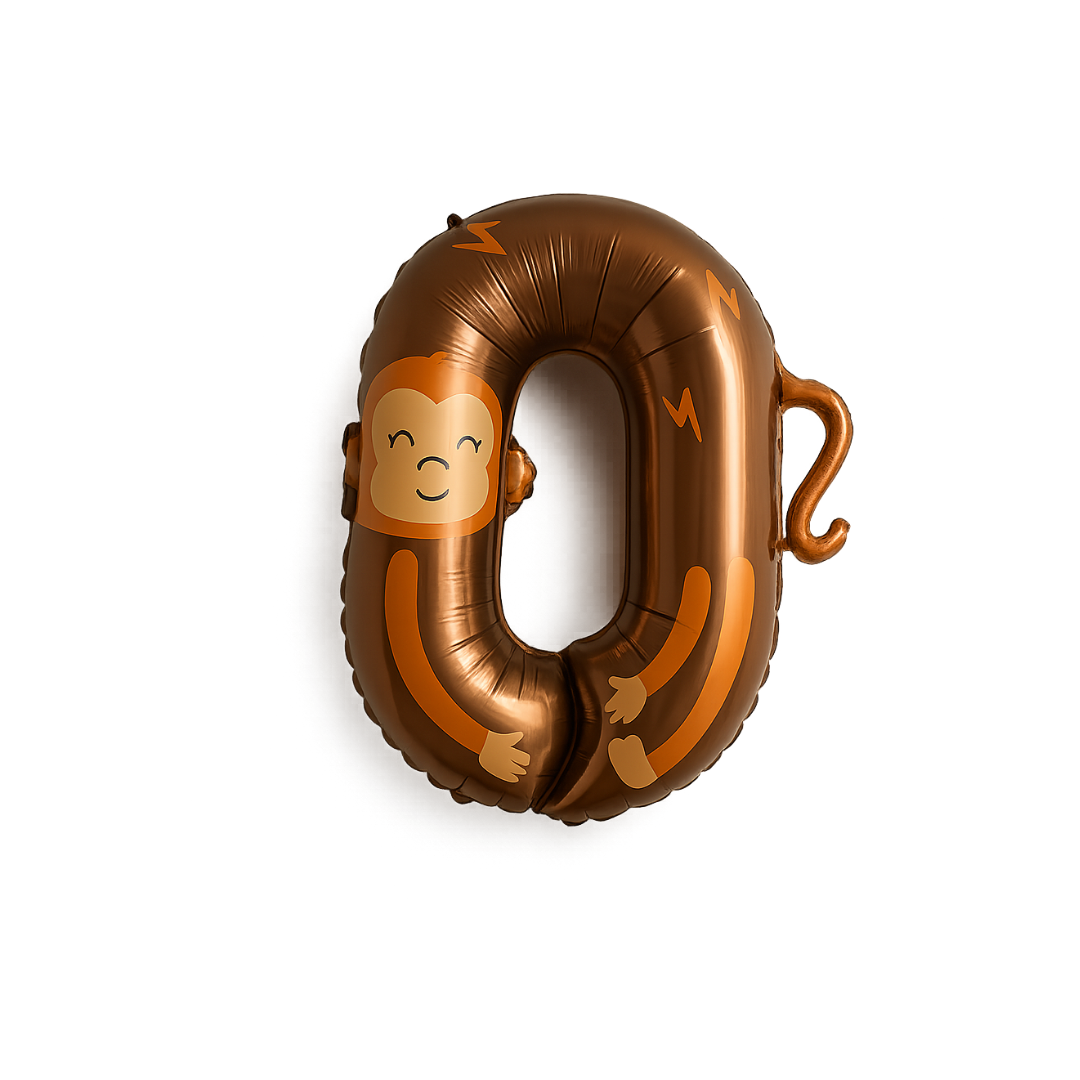 Bring the jungle fun to your party with this adorable 40-inch Number 0 Monkey Balloon – designed especially for kids’ birthdays and animal-themed celebrations. Featuring a smiling monkey face, arms, and a curly tail, it’s the perfect mix of cute and playful.