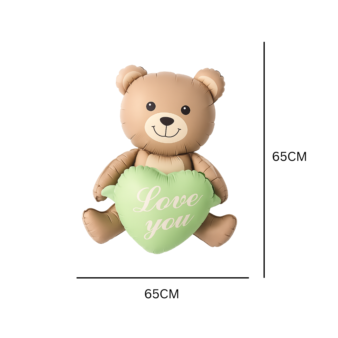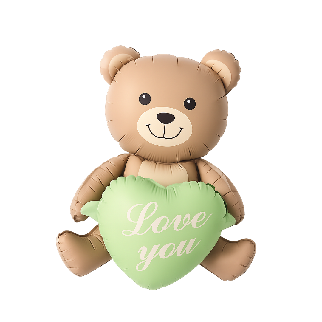 Teddy Bear Balloon with Green Heart "Love You" β Cute Foil Balloon for Baby Showers, Birthdays & Romantic Gifts