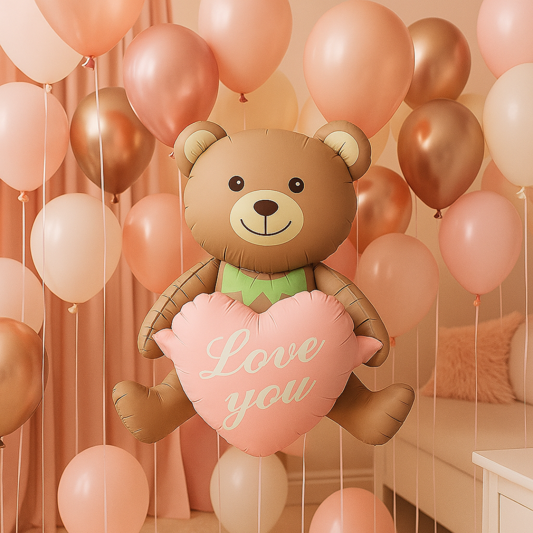 π Add a touch of sweetness to your celebration with our adorable Teddy Bear Foil Balloon holding a soft pink heart that says "Love You". This charming balloon is perfect for romantic surprises, baby showers, first birthdays, or simply to say "I love you" in a memorable way.