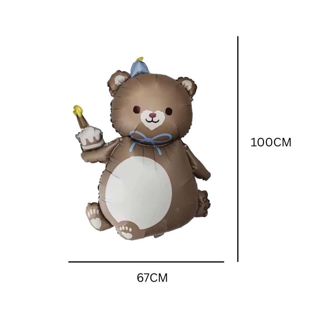 Teddy Bear Foil Balloon Brown | Birthday Party Decoration | Cute 3D Bear with Cake and Hat