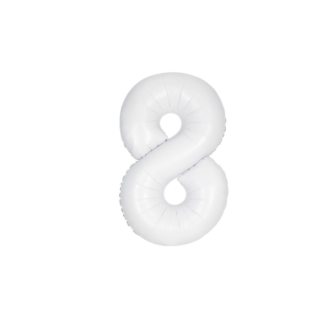 White 40" Number 8 Foil Balloon β Giant Birthday Party Decoration